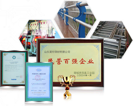 山東美特鋼材有限公司(15863566668)是常年專業(yè)從事生產(chǎn)、銷售內(nèi)外襯不銹鋼復(fù)合管,不銹鋼復(fù)合管護(hù)欄的廠家,公司擁有完整的不銹鋼及不銹鋼復(fù)合管生產(chǎn)線24條,以及各類金屬加工設(shè)備多套(數(shù)控等離子切割機(jī)、沖床、冼床等),公司還擁有獨立的鍍鋅和噴塑車間,良好地處理好鋼板表面效果。 公司優(yōu)勢:一、專業(yè)性強(qiáng)1.專業(yè)設(shè)計、制作和安裝不銹鋼復(fù)合管工程及金屬欄桿工程。集設(shè)計、生產(chǎn)、銷售與安裝為一體的完整體系。2.專業(yè)應(yīng)于:橋梁欄桿、市政建設(shè)、景觀護(hù)欄、體育器材、車輛機(jī)構(gòu)、紡織機(jī)械、醫(yī)療設(shè)備等二、質(zhì)量過硬1.通過IS09001:2000質(zhì)量體系認(rèn)證2. 獲得“全國質(zhì)量、服務(wù)、信譽AAAA及”企業(yè)稱號,“中國綠色環(huán)保建材產(chǎn)品”,“中國優(yōu)質(zhì)建材產(chǎn)品”…